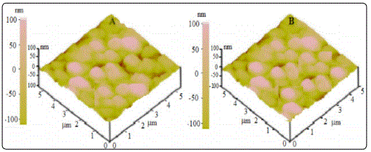 Atomic force microscopy (AFM) is one of the effective ways for the surface analysis of thin films due to its high resolution and powerful analysis software. The ZnS and ZnS:Co thin films were morphologically characterized using AFM technique. Figure 2 shows the image of ZnS:Co film in scanned area of 5 × 5 and 10 × 10 μm2. In both the films the surface is rough and fully covered in the substrate. Clusters of particles are observed over the surface in undoped ZnS film. While formation of unregulated grains of different sizes are observed clearly with pinhole free in ZnS:Co film.