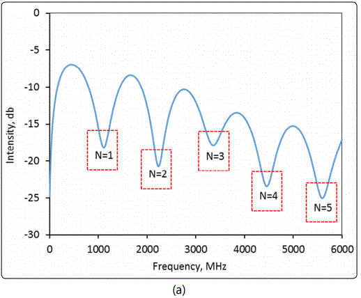The MCCC-FPI depicted in Figure 4 was connected to the microwave transmission line. The source microwave propagating along the coaxial cable generates two reflections (U1 and U2) at the two reflectors, i.e. the interfaces at the two ends of the sample chamber. The two reflections, U1 and U2, interfere and the interference waveform is expressed by the following equation [10],