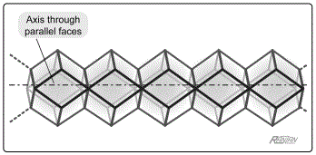 Ironically, if he had followed his own book's instructions —instructions on how to form a 3-dimensional Voronoi honeycomb [3, p68] — he would have arrived at the rhombic dodecahedral cell-shape. And that shape does have a fundamental causal mechanism associated with it. Ignoring the rhombic dodecahedron is one thing, but seeming ignorance of its existence is another. Max Tegmark is an MIT physics professor and author of a book detailing his "Quest for the Ultimate Nature of Reality." (Incidentally, the book presents a truly bizarre version of 'reality.') Therein, the professor states that there exist just five "3-dimensional shapes with only flat identical faces." And then to make his point quit clear, he adds, you "can't invent a sixth one —it simply doesn't exist."[31] Strange indeed.