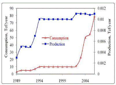 Juan Basin. By 1970s, around 1 Tcf/year were produced
