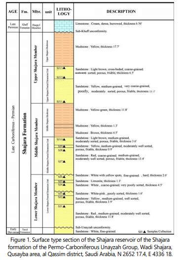 Based on field observation the Shajara Reservoirs of the Shajara Formation of the Permo-Carboniferous Unayzah Group were divided into three units as described in figure1. These units from base to top are: Lower Shajara Reservoir, Middle Shajara reservoir, and Upper Shajara Reservoir.