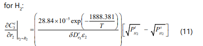 On the permeation side the material balance for hydrogen is given by [14]:
