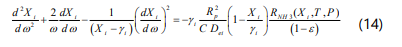 The material balance for component i in the catalyst pellet is given by: