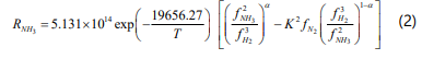 RNH3 | reaction rate of ammonia decomposition, kmol/h m3 |