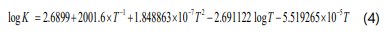 Where fi is the fugacity of component i. The equilibrium reaction constant is by the following equation: