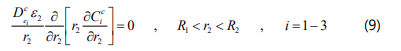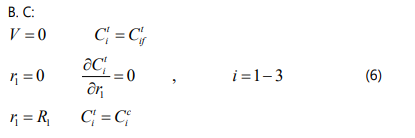 The component mass balance equations for the ceramic support is given by: