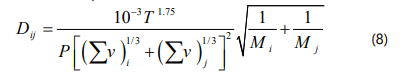 Fuller, Schettler and Giddings correlation is used for the binary diffusivity (Dij) :