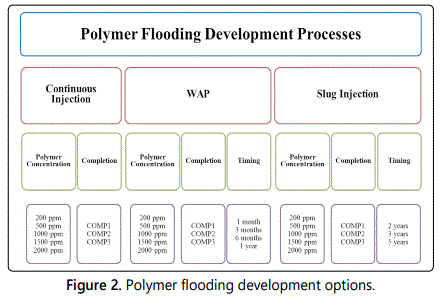 In this study, two development processes were identified: water flooding and polymer flooding.