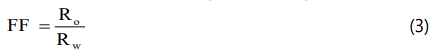 1. The formation resistivity factor (F.F) was calculated for each well and for each field using the following equation :