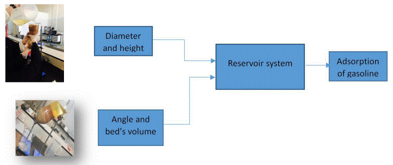 In this work try to use different factors that effect on adsorption of gasoline from reservoirs. Study the effects of four inputs factors angles, diameter, bedʼs volume and height of reservoirs on adsorption of gasoline from reservoirs. Design a new mathematical model to evaluate all important parameters that effect on the system. Compare between experimental and theoretical results to reach to the high accuracy 97% that represents a new mathematical model. Then, make optimization to use this technique to find best optimum conditions.