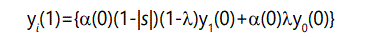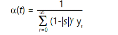 reduced by (i.e., multiplied by) a factor of (1-|s|)r