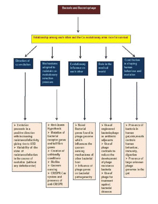 Conclusion: The co-evolutionary struggle for existence paved the way for diverse group of organisms of phage and bacteria with increased adaptive characters. A part from the antagonistic relationship both the organisms have influence on each other which is of evolutionary significance.