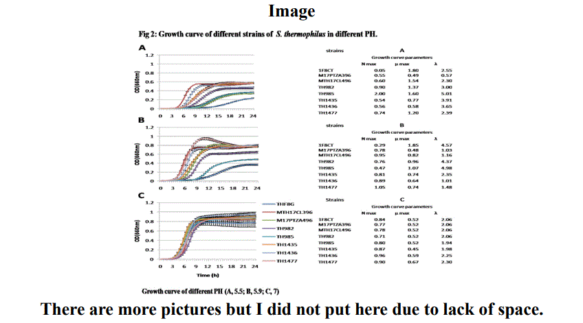 The aim of this study was to discover more about S. thermophilus and its abilities by comparing it with a very less-known bacterium like S. Macedonicus. As a member of the LAB, Streptococcus thermophilus is identified as a thermophilus group and use as a commercial starter in industry. On the other hand, although Streptococcus Macedonicus was first described more than 16 years ago but still the exact role of this bacteria in the industry is not distinct. In this study, eight new isolated strains of S. thermophilus were applied to be investigated from the technological point of view. Analysis such as growth in different