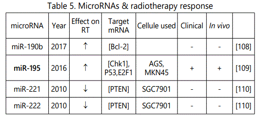 (4) Studies reporting alteration in resistance or sensitivity to radiotherapy in GC cell lines in which miRNA levels have been dysregulated: 8 unique miRNAs have been reported here by 6 studies (table 5);