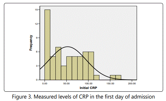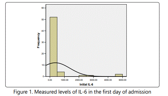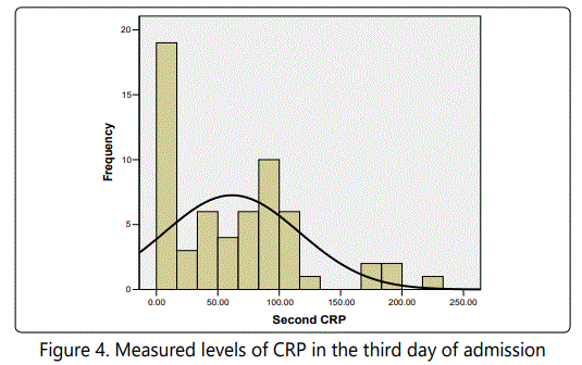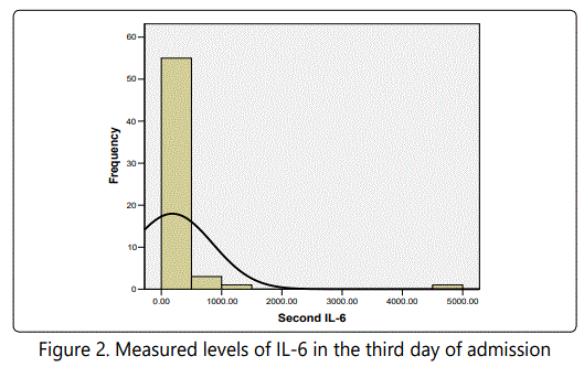 Measured levels of IL-6 and CRP from the day of admission and 48 hours later are presented in figures 1 to 4.