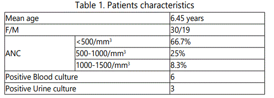 A total of 60 febrile episodes occurring in 49 patients were evaluated. Patient characteristics are summarized in Table 1.