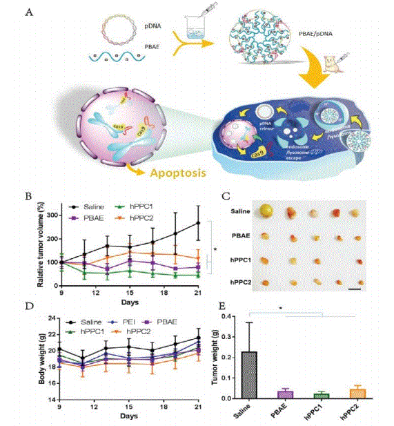 Results: We investigated the ability of hPPC to compress plasmid and the resultant polyplex NPs and evaluated the transfection efficiency and cytotoxicity of the system. Our hPPCs polyplex NPs showed low toxicity in cells and mouse organs. Both systems are tested in vitro and in vivo to evaluate their therapeutic potential. By reducing the expression of HPV16/18 E7, our hPPCs polyplex NPs could inhibit the growth of cervical cancer cells and xenograft tumors in nude mice.