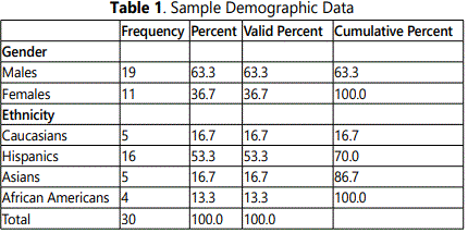 Demographic data was also extracted from the sociodemo graphic questionnaires completed by each participant and a descriptive statistical analysis was performed to describe the sample as shown in Table 1.