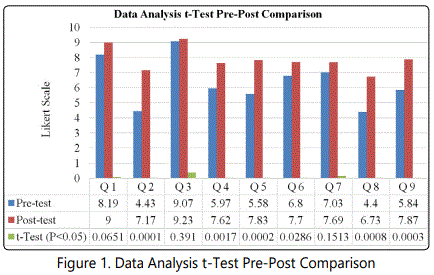 Data analysis was done using statistical software on Excel. Unpaired pre-post tests were examined using a t-Test with a p value of <0.05.