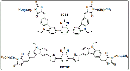 We have contributed in this type of solar cells by designing and synthesizing new small molecules, which were used as the electron donor materials in BHJSCs. Our strategy was to use donor-acceptor-donor (D-A-D) backbone structures ECBT and ECTBT [17] (Figure 2).