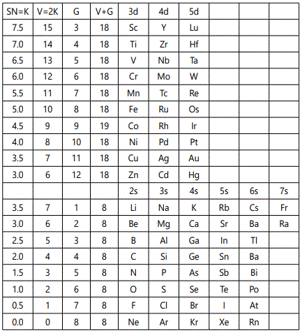 SN: Skeletal Number; V: Valence; G: Group valence electrons.