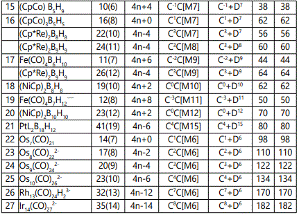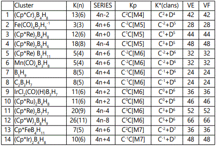 The application of the skeletal number to categorizing clusters is a new concept [5] and the K(n) parameter is usually a whole number. Since this approach is new, the skeletal numbers have been reproduced in table 1.
