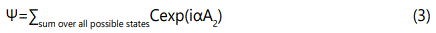 To calculate what is inside our universe, we propose to calculate the wave function created by the action (2) by summing over the range of the horizon of our observation. In Quantum physics, everything is mathematically represented by a wave function. One can calculate the wave function of our universe using Feynmanʼs path integral formulation of quantum physics [17]. According to this method, the wave function created by the action A2 is of the form: