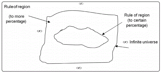 Rule of region is a region in which certain natural laws exist, which makes the humans and other species livable with certain dimensions. Certain dimensions assumption is valuable, as humans cannot go invisible like HDS. Moreover they cannot fly, go to reversible time (past), not known about future, cannot control particles, fundamental forces and souls and also cannot exhibit like HDS which exist as perfect system. Beyond this region, human life is impossible. In order life to exist beyond this region, either environment should adjust their dimensions to make life suitable or humans should adjust their dimensions. If this happens, then we are in perfect system in terms of particles and fundamental forces. Even perfection is achieved in particles and fundamental forces, but not in soul level, then it cannot be said as perfect system. Even perfection not achieved in particles and fundamental forces, we can get a feel of perfect system in soul level (poor getting happiness because of agreement of other humans). Even in soul level perfection is reached, it varies and not constant for all the times, thus it can be said that the rule of region is still handicapped to humans, but better than outside rule of region as far as humans concerned and this is not true for HDS, for which the rule or region or outside, nevertheless this whole universe is still perfect. This is assuming perfect system for HDS. The rule of region (to certain percentage) is shown in (Figure 2). Again it is based on human view and survivability.