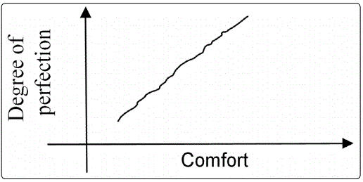 With higher dimensions in particles, fundamental forces and soul, it might possible to attain a perfect system with the flexible nature or infinitely many dimensions in soul, particles and fundamental forces. Thus this world for humans and lower dimensional species is irreversible, but for higher dimensional states reversible (based on perfect system). Thus for them this world is a perfect system and for us not. When we talk on the basis of need, it can be said as perfect if it is satisfied (but not for HDS). Thus even in steady state if needs are satisfied and comfort is produced, then we can say steady system as a perfect system. Thus as a function of comfort, we say a system as perfect (not for HDS). Thus whatever we say as perfect in this world is not perfect. The degree of perfection vs comfort graph based on human sense can be drawn as shown in figure 3 below. This is not right as far as HDS is concerned.