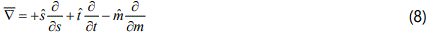 +ŝ,+t̂,−m̂ = Unit vectors in the directions of the straight axis s,t,m, respectively