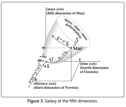 Dias [2-4] showed that space (s), time (t) and mass (m) are interconnected, thus establishing the Diasʼ Equation of gravity (ḡ) in the fifth dimension [s(x, y, z), t, m] [3].