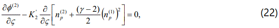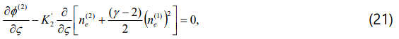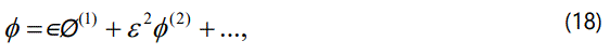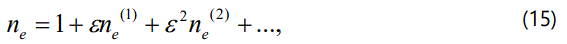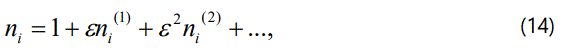 where Vp is the wave phase speed (ω /κ with ω being angular frequency and κ being the wave number of the perturbation mode), and ∈ is a smallness parameter measuring the weakness of the dispersion (0 < ∈ < 1). We then expand ni, ne, ui, and Φ, in power series of ∈: