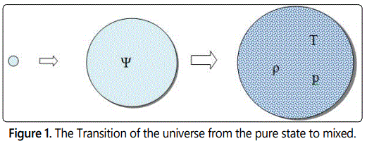 5. After the transition of the universe from a pure state to a mixed one as a result of many subsequent births and annihilation of particles, a local thermodynamic equilibrium is formed, i.e., universe is thermalized and heated (Figure 1).