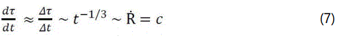 With the assumption that we measure the speed of light as the greatest possible signal velocity, not only with relative movements in space (SRT) and different gravitational fields (GTR) as a constant quantity, but also at different times, the demand for a further flexibilization of the concept of time results from equation (5). The task is therefore to find a time measure that measures the speed of light as a constant value at all times. This results, if one introduces a time τ, which changes proportional to the world radius. An idea, by the way, which Henning Genz already had [4], p. 229: "Then why not go all the way and choose the radius of the universe as time parameter"?