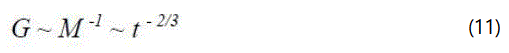 With g ~ G and G ~ t-2/3 you get T ~ t1/3, which corresponds to a clock frequency of f = 1/T ~ t-1/3
