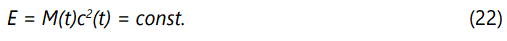 Based on the assumption that the overall energy E in the universe is constant (Axiom VI), results from E = Mc2 and (5) for the mass of the universe.