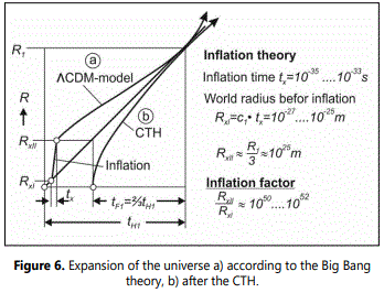 According to the CTH, space, time and matter form a unit and develop evolutionarily according to identical, time-dependent laws. According to the CTH time has neither beginning nor end. The "big bang" disappears into the infinite past, which is why the universe manages without inflation. The accelerated expansion of the universe is also unlikely to occur if the SN-Ia measurement results are interpreted using the CTH. The cosmological constant Ʌ can then be omitted (Ʌ=0) and consequently no "dark energy" is needed.