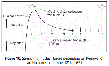 It is also interesting with regard to the relationship between gravitation and strong nuclear force that, according to loop quantum cosmology, the gravitational force at the Planck scale (Ip ≈ 10-15 m) is said to have had a repulsive effect [20], p. 155, which also applies to strong nuclear force (Figure 10).