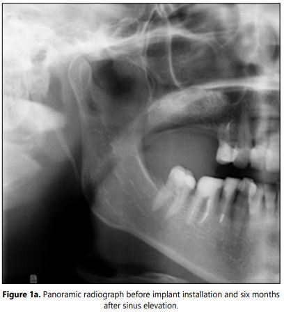 Radiographic examination: The CBCT or panoramic X-rays were performed pre-surgically and before the implant placement to evaluate the bone formation (Figures 1 and 1a). Intraoral X-rays were accomplished six months after implant placement and then annually to asses marginal bone loss. The success rate was determined using the Albrektsson et al. criteria [18].