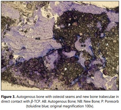 Background: To assess the clinical and histomorphometric data of the new bone tissue from a mixture of autologous bone and β-tricalcium phosphate.