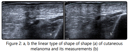 There are reports in the literature [9] of subclinical satellite lesions that were diagnosed using ultrasound. From the other hand in their pilot study, the other researchers noted the Elastography can enhance the diagnostic accuracy of ultrasound for differentiating between reactive and malignant cutaneous melanoma lymph nodes and might eliminate the need for sentinel lymph node biopsy [10]. Ultrasound provides a detailed preoperative study, reducing the number of incompletely excised lesions and avoiding large resection, which could lead to functional and aesthetic problems [11]. It is an opportune method for revealing the depth invasion of melanoma, farther, it helps in the preoperative staging of melanoma. The measurement of the tumor thickness should be based on the site of greater invasion. It can be useful in the planning surgery. Pre-operative skin marking can help pathologist to specify the melanoma's deepest invasion and its borders in the removed flap tissue, as well it can help in pre-surgical monitoring in pathological changes of the skin.