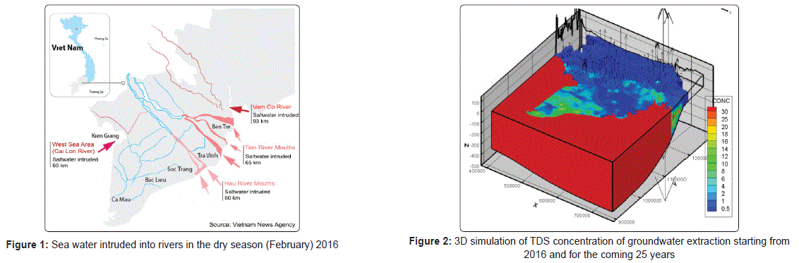 Water resources in the Mekong River Delta, Vietnam (MRD) are important factors that greatly influence the livelihood and economy of this region. The MRD occupies an area of 40,577 km2 with elevations ranging from 0.3 to 0.7 m above mean sea level; hence it is projected to be significantly influenced by salt water intrusion due to climate change.