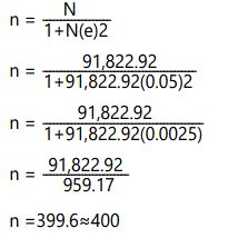 The Taro Yamane Formula was used.