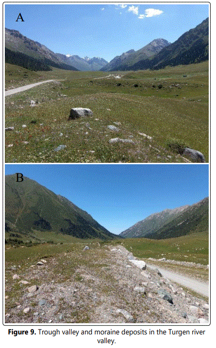 3.4. Moraines: Moraine deposits in the valley of the Turgen River are located above 2600 m. The features of the ancient glacial relief are perfectly expressed here.