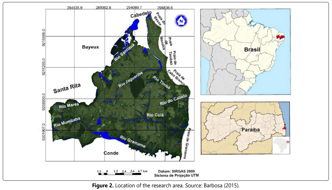 The municipality of João Pessoa is the capital of the state of Paraíba, the most eastern in Brazil. In fact, João Pessoa is known worldwide as the ‘eastern extreme of the Americas’, which in itself already has a potential for tourism. Its geographical coordinates are 7°7’S and 34°53’W (Figure 2), and the proximity to the Equator provides a lot of sunshine throughout the year and, therefore, high temperatures (annual average temperature of 26°C). The municipality has an area of 211.5 km2 and a population of 809,015 inhabitants (IBGE, 2019), resulting in a demographic density of 3825 inhabitants / km2, the highest in the state.