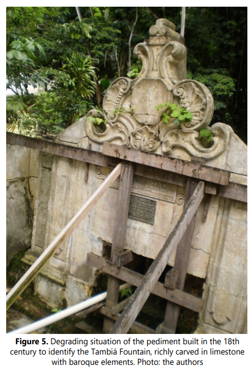 The fountain represents one of the main monuments linked to the history of water supply in the city and had its peak importance for the local population between the mid18th century and the early 20th century when, during this period, the use of springs as the main water supply for the city decreased due to the implementation of the piped water supply system. Obviously, a change in water supply is, among other things, a habit-changing process that took some time for the community to adapt to; therefore, the water from the Tambiá reservoir was still widely used by the population until the mid-20th century (ARAÚJO, 2012).