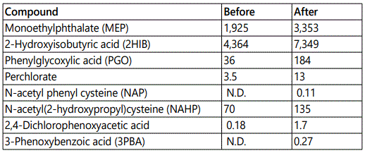 Concomitant with these changes, urinary excretion of a number of lipophilic toxicants significantly increased (Table 1).