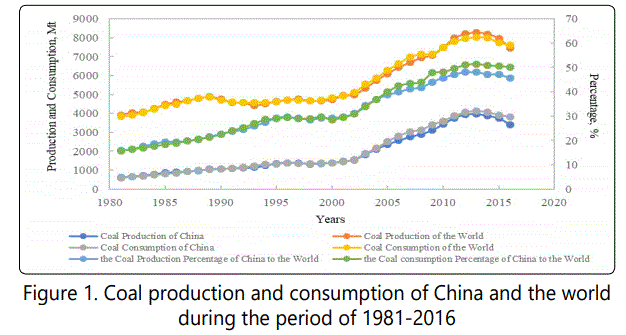 China is the largest coal producers and consumers in the world. As shown in Fig. 1, there is similar tendency both of production and consumption for China and the world which indicates that China plays a vital role on the total coal economic in the world. The coal production and consumption percentage of China to the world is approximately 50% in recent years [1]. Meanwhile, in the exploration of coal seam storage in China, thick coal seams (thickness≥3.5m) are rich in reserves accounting for approximately 44% of all coal seam reserves. Moreover, the production of thick coal seams is roughly 45% of the total coal production [2-5]. It can be seen that the thick coal seam has obvious advantage in resource reserves and practical production in China [6-8].