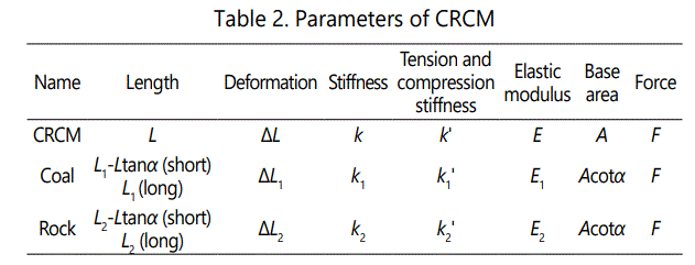 It should be noted that the stiffness of CRCM can also be obtained as equation (9) through the series stiffness formula of coal and rock separately.