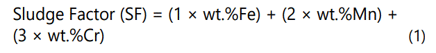 Aluminum alloys have been the primary material of choice for structural components of aircraft and automobile industry since about 1930. They are the overwhelming choice for the fuselage, wing, and supporting structure for commercial airliners and military cargo and transport due to their high ratio of strength to weight [1]. Aluminum alloy castings are widely used in the automobile and aerospace industries, and are replacing heavier forged steel or cast iron for the lighter and more fuel-efficient automobiles. Producing defect-free Al castings becomes more important. Aluminum alloys are used extensively due to their high strength to weight ratio, good machinability, corrosion resistance, optimum surface finish, and high electrical and thermal conductivity. They are characterized by their low specific gravity, low melting point, negligible gas solubility (with the exception of hydrogen), excellent castability and good corrosion resistance [2, 3]. Alloys containing 10-13 wt. %Si, eutectic or near eutectic compositions have small freezing range and this alloy system is widely used in automotive applications to produce critical components such as engine blocks, cylinder heads and this group of alloys is sometimes referred to as "piston alloys [3]. The mechanical properties of a casting are controlled by its microstructure which, in turn, is influenced by the chemical composition of the alloy, and by the presence of impurities such as iron, the presence of casting defects (porosity, inclusions, etc). In the case of Al-Si alloys, this would imply the a-Al dendrite arm spacing (DAS), the morphology and size of the eutectic Si particles, and the amount of intermetallics and/or other second-phase constituents present in the microstructure [4]. Chromium is one of elements adding to most of Al –Mg-Si and Al-Mg –Zn groups, in which the amount added generally not exceeding 0.35% chromium in order to control grain structure, to prevent grain growth in Al-Mg alloys and to prevent recrystallization in Al-Mg-Si during heat treatment or hot working [5]. Chromium is known to enhance the corrosion and stress corrosion cracking behaviour of nickel-based alloys in high temperature water. Chromuim can increase the hardness about 8% of Al-9Si-Cu die cast by addition 0.057 to 0.15 wt.% [6]. Cr addition also exhibits a similar behavior to that of Mn. The precipitation of the α-phase in the form of large dense particles (sludge) in 339 alloys containing relatively high-Cr has been reported by Granger [7]. Mn and Cr additions, however, do not significantly reduce the deleterious effect of Fe on fracture toughness has been reported by Shabestari [8]. The impact toughness of Al-Si alloys is controlled to a significant extent by the morphology and size of the eutectic Si particles, as well as by the size of the α-Al dendrites. The size and morphology of the intermetallic phases which form in the interdendritic regions between aluminum and the alloying additives also have a strong influence on the impact toughness of Al-Si [9, 10]. The castability/ fluidity is an important feature since it limits the wall thickness that can be successfully filled. Quantitatively fluidity is determined by measuring the distance of metal flowing through mould channel with small cross section. The spiral test has been extensively used because it is compact and portable, and hence can be used easily in the foundry [11]. Sludge formation not only changes the chemical composition of the molten metal, but also diminishes the castability of molten metal. Sludge formation has been shown to be dependent on the alloy's chemistry, melting and holding temperatures, and time [6]. Gobrecht and Campbell [12] have defined a sludge factor (SF) for Al–Si–Cu alloys. It is useful to determine Fe, Mn, and Cr contents to prevent sludge formation. This factor is calculated from the formula shown as Eq.1.